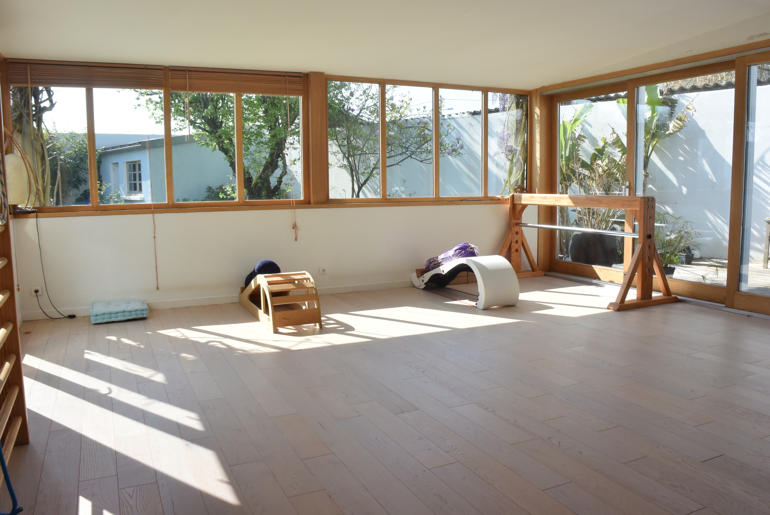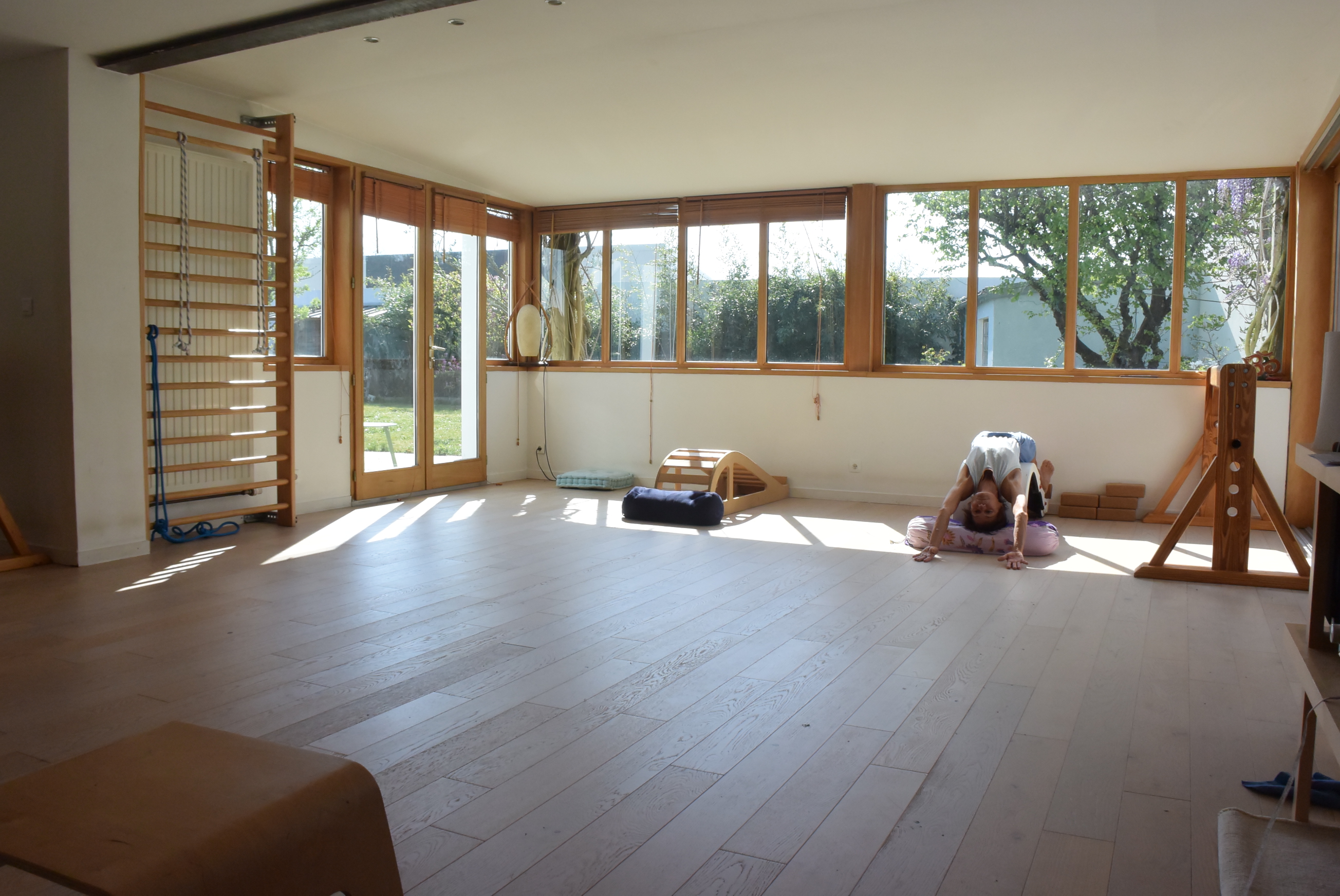 Le centre bénéficie d’un espace de 110 m2 , un vestiaire et accueil de 40 m2 et une salle de pratique de 66 m2 ouverte sur le jardin