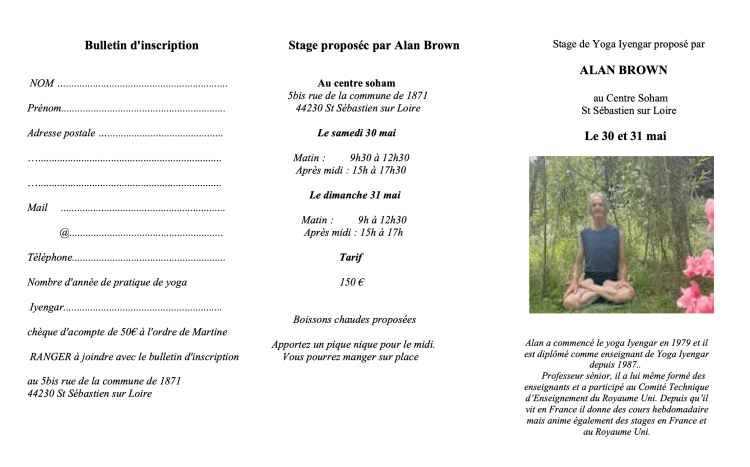 Inscriptions: Au centre Soham , par téléphone ou par mail